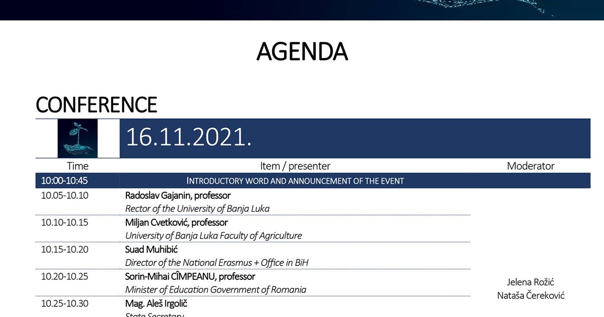 Konferencijski dio SmAgTech Expo događaja počinje 16.11.2021. godine, plenarnom sesijom sa početkom u 11.00h. Ukupno će biti predstavljeno četri savremene teme u trajanju od po 30 minuta. Pitanja predavačima će biti moguće postaviti nakon predavanja. Više informacija o predavačima i temama pogledajte na materijalima u prilogu. ...