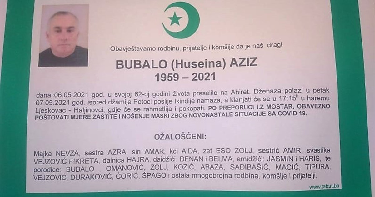 S nevjericom, tugom i boli, obavještavamao sve radne kolege, bivše i sadašnje studente Agromediteranskog fakulteta da je naš Aziz Bubalo, noćas preselio na neki bolji svijet. ...