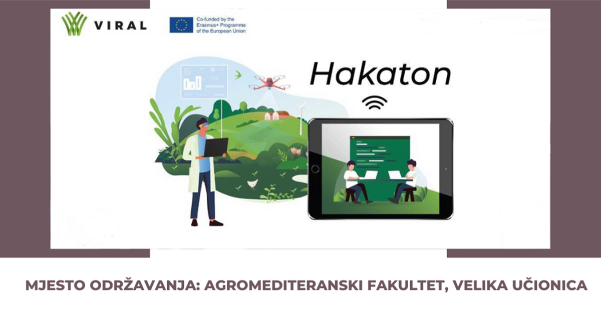 Dana 19.04.2022. godine (utorak), u velikoj učionici Agromediteranskog fakulteta održat će se prezentacija Hakatona. Studenti će dobiti više informacija o održavanju ovogođišnjeg Hakatona u Prijedoru od 12.05. - 14.05. kao i način prijave na ovo takmičenje koje se već drugu godinu za redom održava u sklopu Erasmus+ projekta VIRAL. Dobro nam došli !!! ...