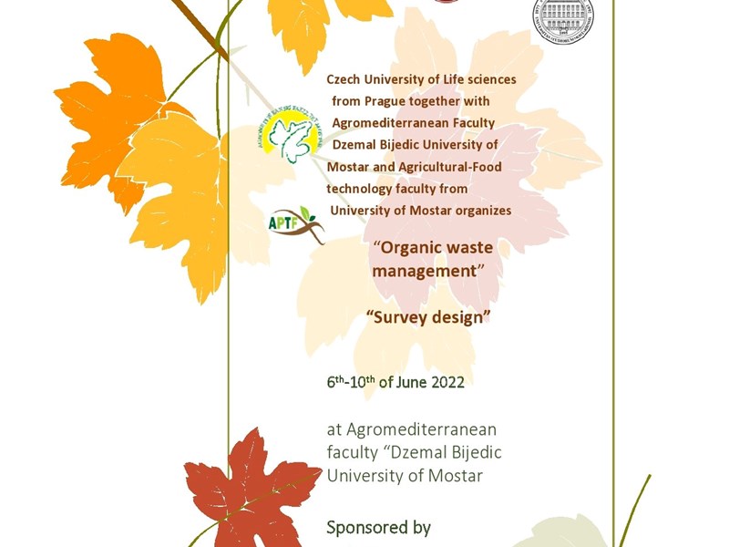 U periodu od 6.6.2022. do 10.06.2022. godine na Agromediteranskom fakultetu održat će se dva predavanja u organizaciji profesora Fakulteta za tropske nauke, Univerziteta Prirodnih nauka iz Praga, Češke, na temu "Zbrinjavanje organskog otpada”