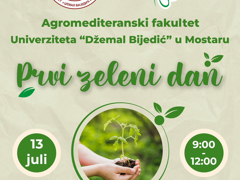 On 13.07.2023. (Thursday), in the period from 09:00 to 12:00, the Agro-Mediterranean Faculty of the University "Džemal Bijedić" in Mostar will organize the event "GREEN DAY" on the plateau of the Faculty.