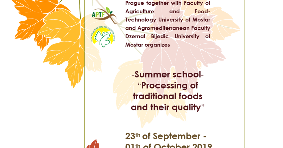 U periodu od 23.9. do 1.10.2019. održana je Ljetna škola pod nazivom “Processing of traditional foods and their quality” koju Agronomski i prehrambeno-tehnološki fakultet organizovao u saradnji sa Agromediteranskim fakultetom pod pokroviteljstvom Češke razvojne agencije.Ljetnu školu je izvodilo nastavno osoblje Češkog univerziteta prirodnih nauka, Fakulteta za tropske poljopriv ...