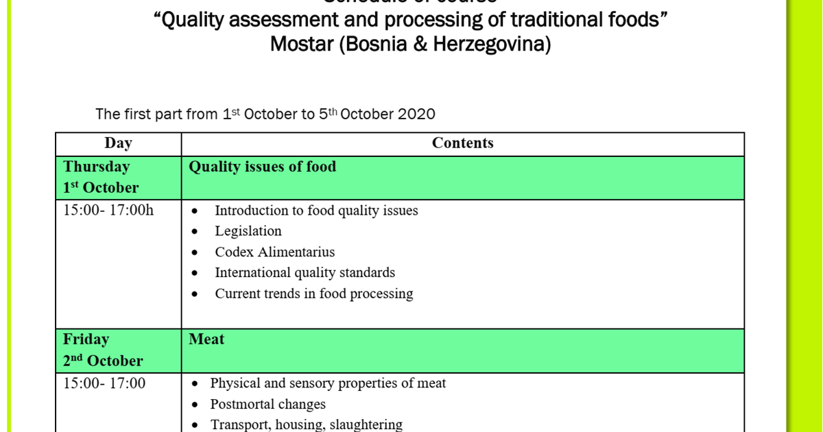 Najava obuke pod nazivom “Quality assessment and processing of traditional foods”