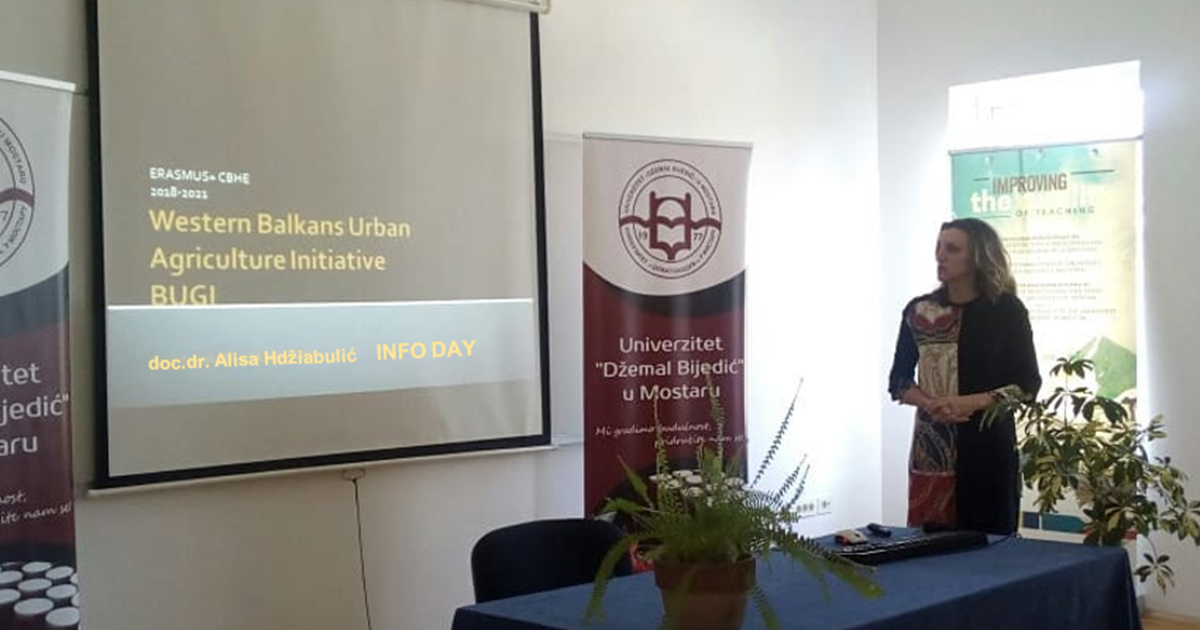 U sklopu obilježavanja 43 godine od osnivanja Univerziteta “Džemal Bijedić” u Mostar, 14.2.2020. godine na Fakultetu informacijskih tehnologija - FIT UNMO održan je Info dan Erasmus+ projekta Western Balkans Urban Agriculture Initiative - BUGI Cilj studijskog programa: Osposobljavanje stručnjaka u području urbane poljoprivrede i srodnih područja kako bi gradovi bili održiviji, ...