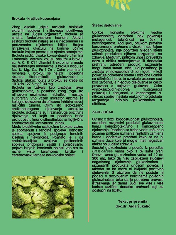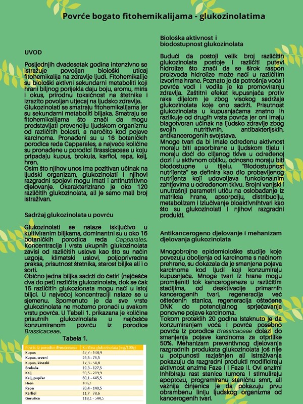 Više detalja o sadržaju glukozinolata u povrću, biološkoj aktivnosti i biodostupnosti glukozinolata, antikancerogenom djelovanju i mehanizamu djelovanja glukozinolata možete saznati na linku ispod.