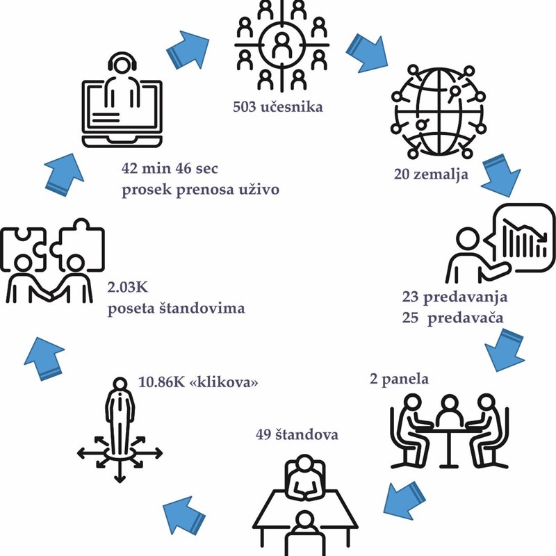 Za EXPO SmAgTech događaj ukupno se registrovalo 503 učesnika iz 20 zemalja. Najviše učesnika je bilo iz Bosne i Hercegovine, Rumunije i Crne Gore. Tokom EXPO SmAgTech, registrovano je 10.86K zasebnih događaja na platformi, od čega 2.03K predstavlja aktivnosti na štandovima. Prosječno trajanje praćenja prenosa uživo iznosilo je 42 minuta i 46 sekundi. Za više informacija pogledajte EXPO SmAgTech 2021_IZVEŠTAJ SRP