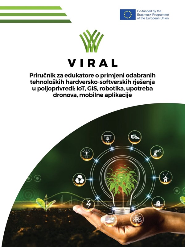 Projekat VIRAL iznedrio je još jedan važan i inovativan resurs- ‘’Priručnik za edukatore o primjeni odabranih tehnoloških hardversko-softverskih rješenja u poljoprivredi: robotika, GIS, upotreba dronova, IoT, mobilne aplikacije’’ koji će pomoći našim poljoprivrednim proizvođačima da ovladaju novim informaciono-komunikacionim tehnologijama u svojoj poljoprivrednoj proizvodnji.