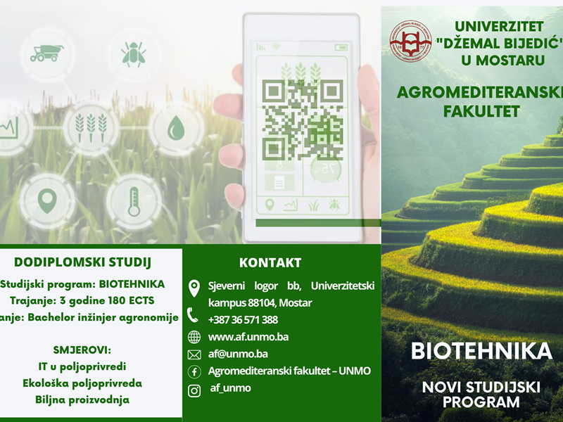 Ovaj dodiplomski studij namijenjen je sticanju širih znanja iz područja agronomije općenito biljne proizvodnje, ekološki prihvatljive biljne proizvodnje kao i savremenom primjenom IKT-a u poljoprivredi. Agronomi se danas bave i proizvodnjom hrane i očuvanjem, zaštitom te održivim korištenjem prirodnih resursa (voda, tlo), ali i uređenjem okoliša. Zato ova grana zahtjeva visokoobrazovane i specijalizirane stručnjake.