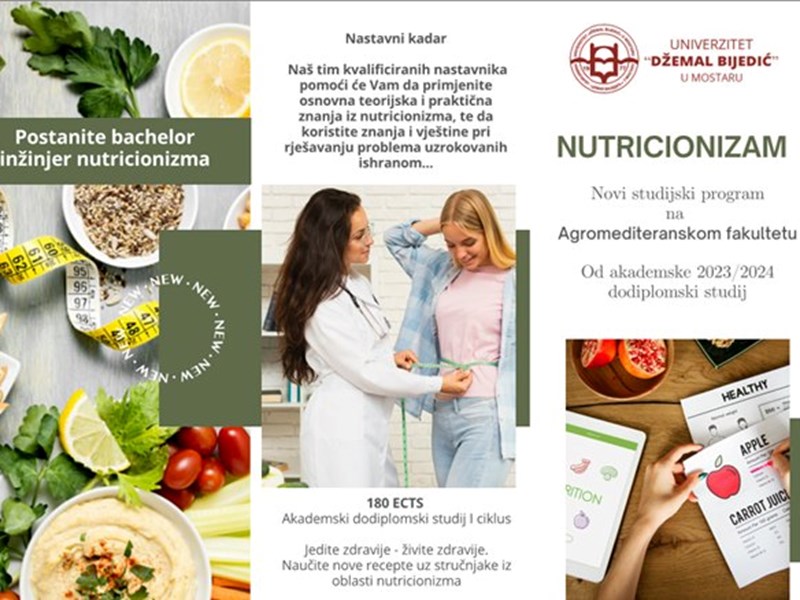 Novi načini studiranja pružaju razumijevanje trenutnih trendova i potrebu za inoviranjem postojećih nastavnih planova i programa uz uvođenje novih tehnologija. Agromediteranski fakultet Univerziteta Džemal Bijedić” u Mostaru od nove akademske godine nudi novi mogućnost studiranja na dva nova studijska programa na dodiplomskom studiju i to: Biotehnika i Nutricionizam. Studijski programi I ciklusa traju 3 godine.