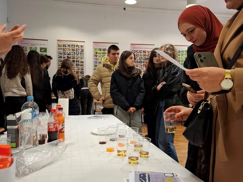 ◇Profesori i studenti predstavili su svoj rad kroz zanimljiv prezentacijski program koji je uključivao entomološke zbirke, uzgoj mikro bilja i klica, klijanje polena in vitro, mikroskopiranje, korištenje refraktomera za određivanje zrelosti voća. Posebno je pripremljena i radionica za senzornu analizu sokova, na kojoj su učenici bili pravi ocjenjivači i mogli su dobiti uvid kako izgleda senzorna analiza. Veliki interes je izazvao i nutricionistički kutak u kojem su studenti studijskog programa Nutricionizam prezentirali neobične recepte i preporuke za zdravu prehranu.