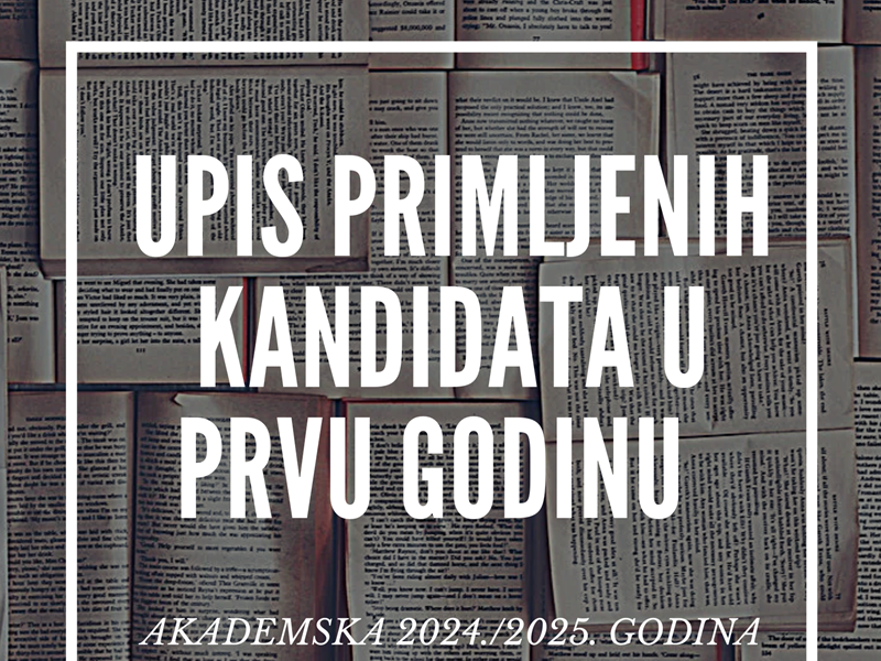 Informacije za upis u I godinu Akademskog dodiplomskog studija, prvi upisni rok, akademska 2024./2025. godina