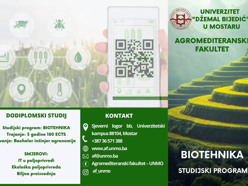 Studijski program “Biotehnika” obuhvata širok raspon tehnika i procesa koji su revolucionirali način na koji komuniciramo s prirodom i iskorištavamo njene resurse.