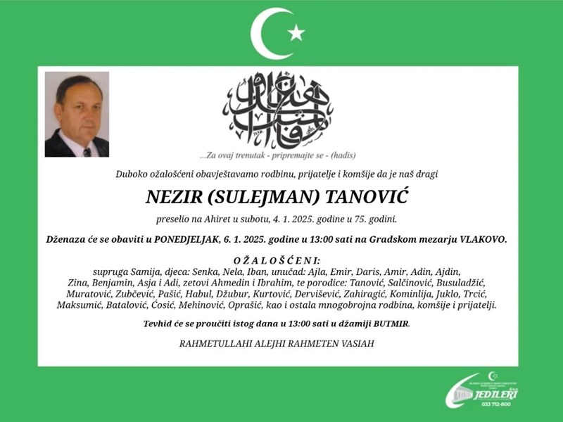 U subotu, 4. januara u svojoj 75. godini života preselio je naš dragi profesor Nezir Tanović.